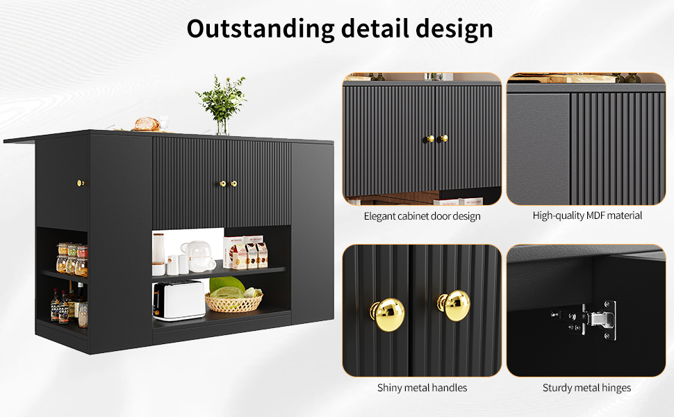 Product Name:Modern kitchen island, sideboard, kitchen cabinet with drawers and shelves, sideboard for kitchen & dining room, black